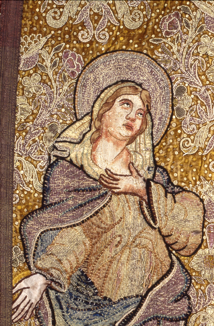 Bannière de procession Christ entre la Vierge et saint Jean, saint Pierre (Minihy-Tréguier),