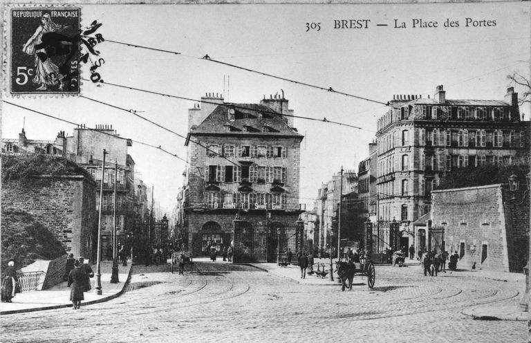 Vue de Brest : la place des Portes, carte postaleImmatriculation
