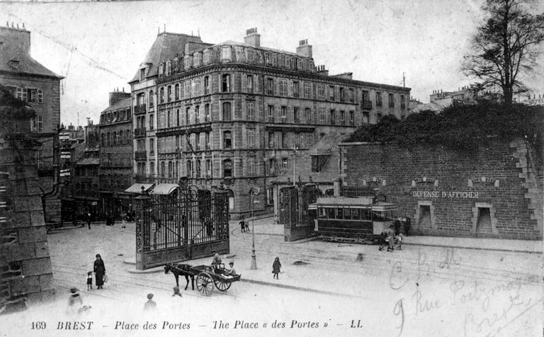 Vue de Brest : la place des Portes, carte postaleImmatriculation