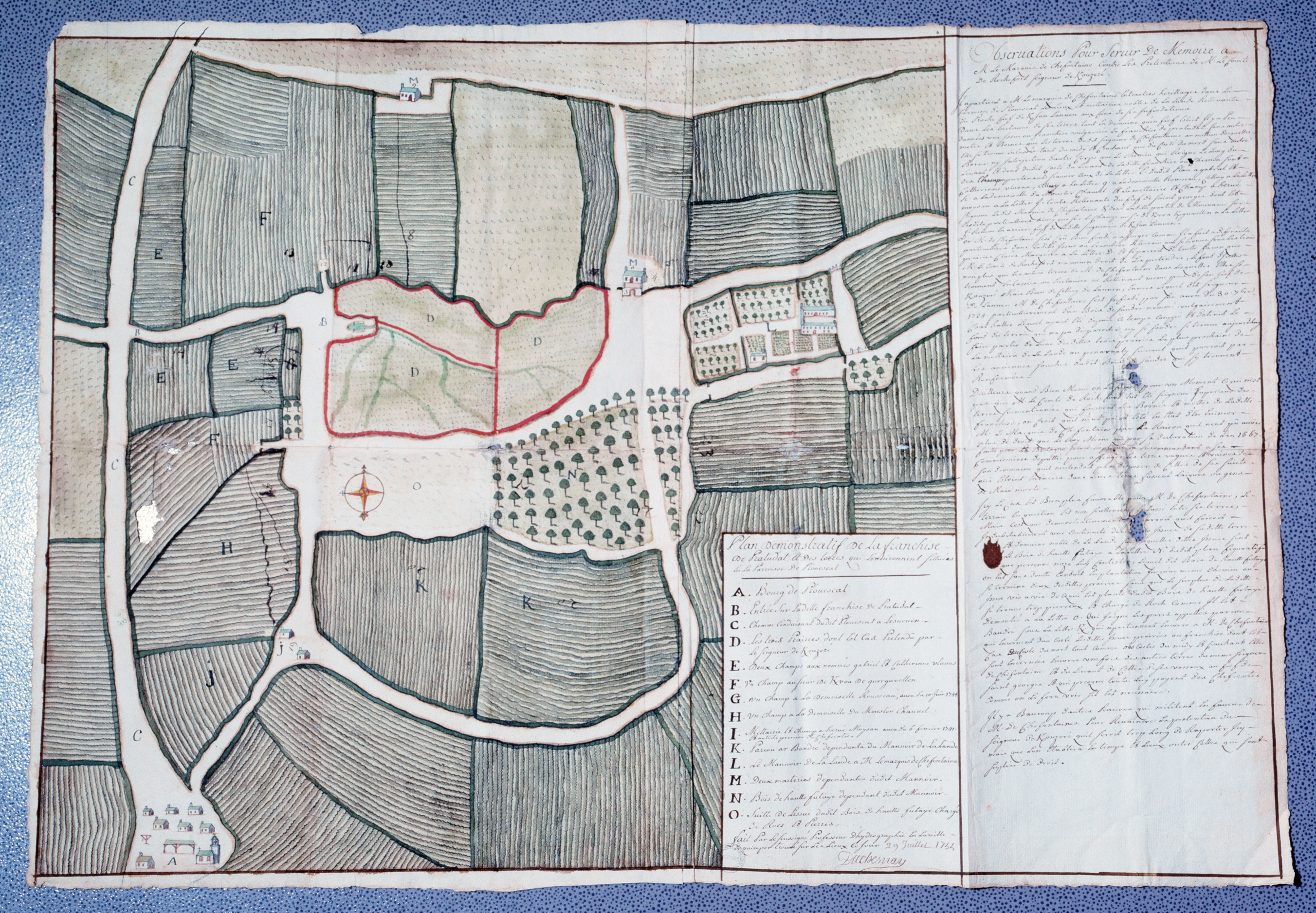 Manoir, Pratudal : plan démonstratif de la franchise de Pratudal et des terres qui l'environnent, 1754 (A. D. Finistère)Immatriculation