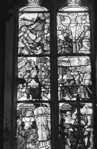 Verrière à personnages de la maîtresse-vitre (baie 0) : Passion,
