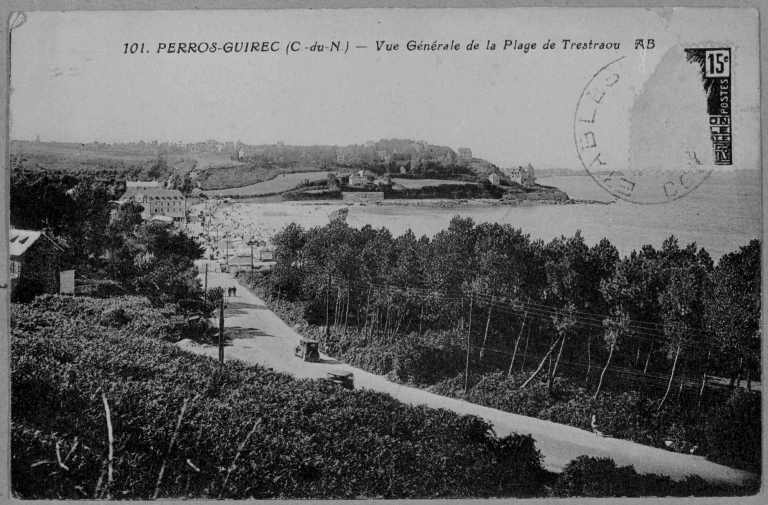 Vue générale de la Plage de Trestraou (repro. carte postale ancienne).Immatriculation