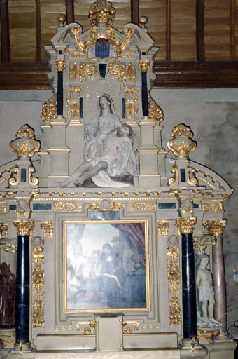 Autel retable sud, détail retable et statue de la niche supérieure.Immatriculation