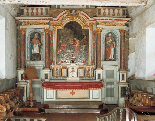 Ensemble du maître-autel : autel, antependium, gradin d'autel, retable, 2 degrés d'autel,