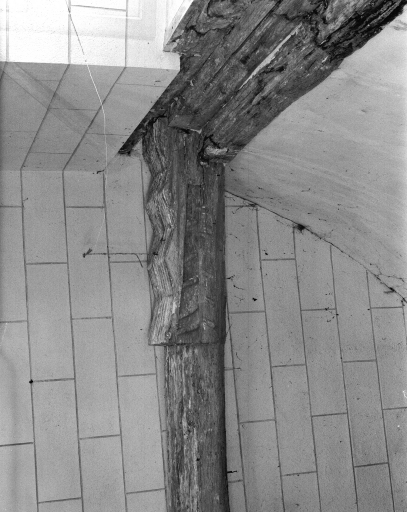 Vue intérieure ; détail, entrait sculptéImmatriculation