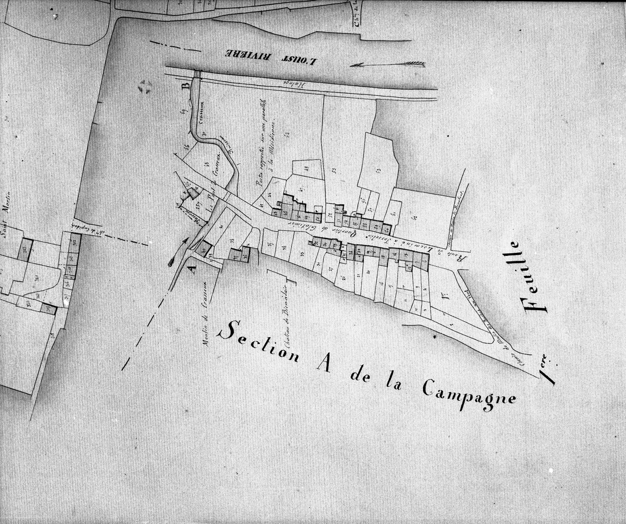 Ancien faubourg Glatinier : chemin de halage et ponceau enjambant le ruisseau de Crasseux, entre l'écluse de Beaufort et le château de Josselin, sur le cadastre de 1832 (A. D. du Morbihan, série 3 P 118/)Immatriculation