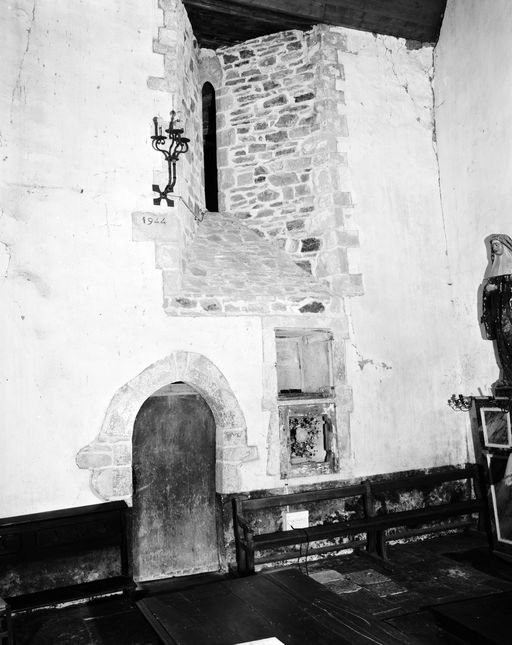 Chapelle, choeur, mur nord : porte de sacristie, niche crédence et baie (état en 1992)Immatriculation
