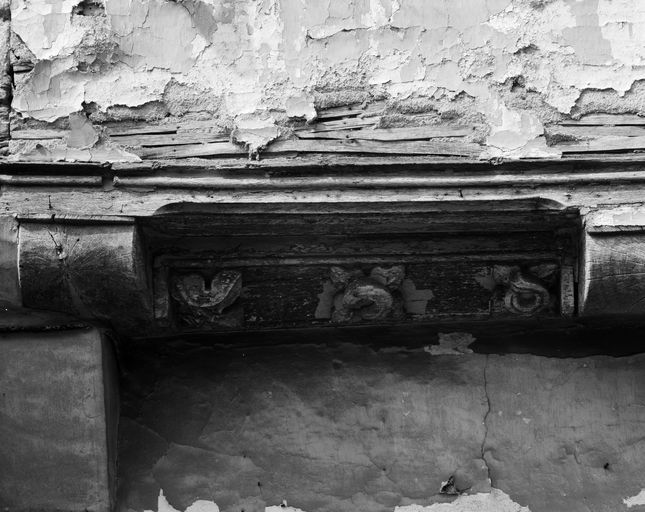 Maison, élévation sur rue : décor de la sablière inférieure (état en 1992)Immatriculation