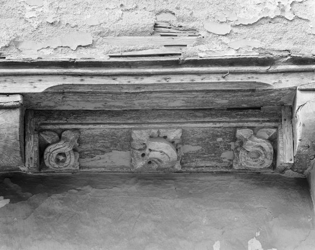 Maison, élévation sur rue : décor de la sablière inférieure (état en 1992)Immatriculation