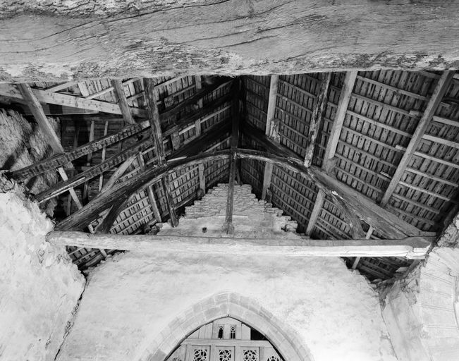 Chapelle, la nef : la charpente entre le carré du transept et le mur diaphragme (état en 1992)Immatriculation