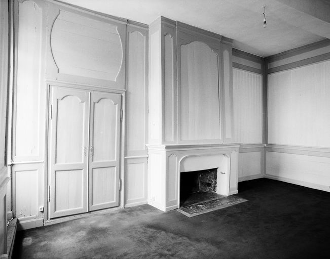 Maison, premier étage, pièce est : cheminée et lambris (état en 1992)Immatriculation