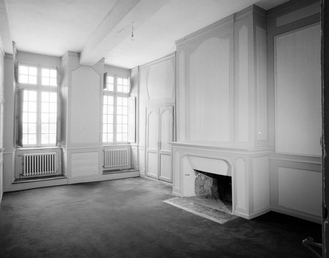 Maison, premier étage, pièce est : cheminée, placard et fenêtres sur cour (état en 1992)Immatriculation