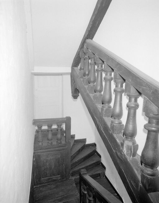 Maison, escalier : vue prise du palier du premier étage (état en 1992)Immatriculation