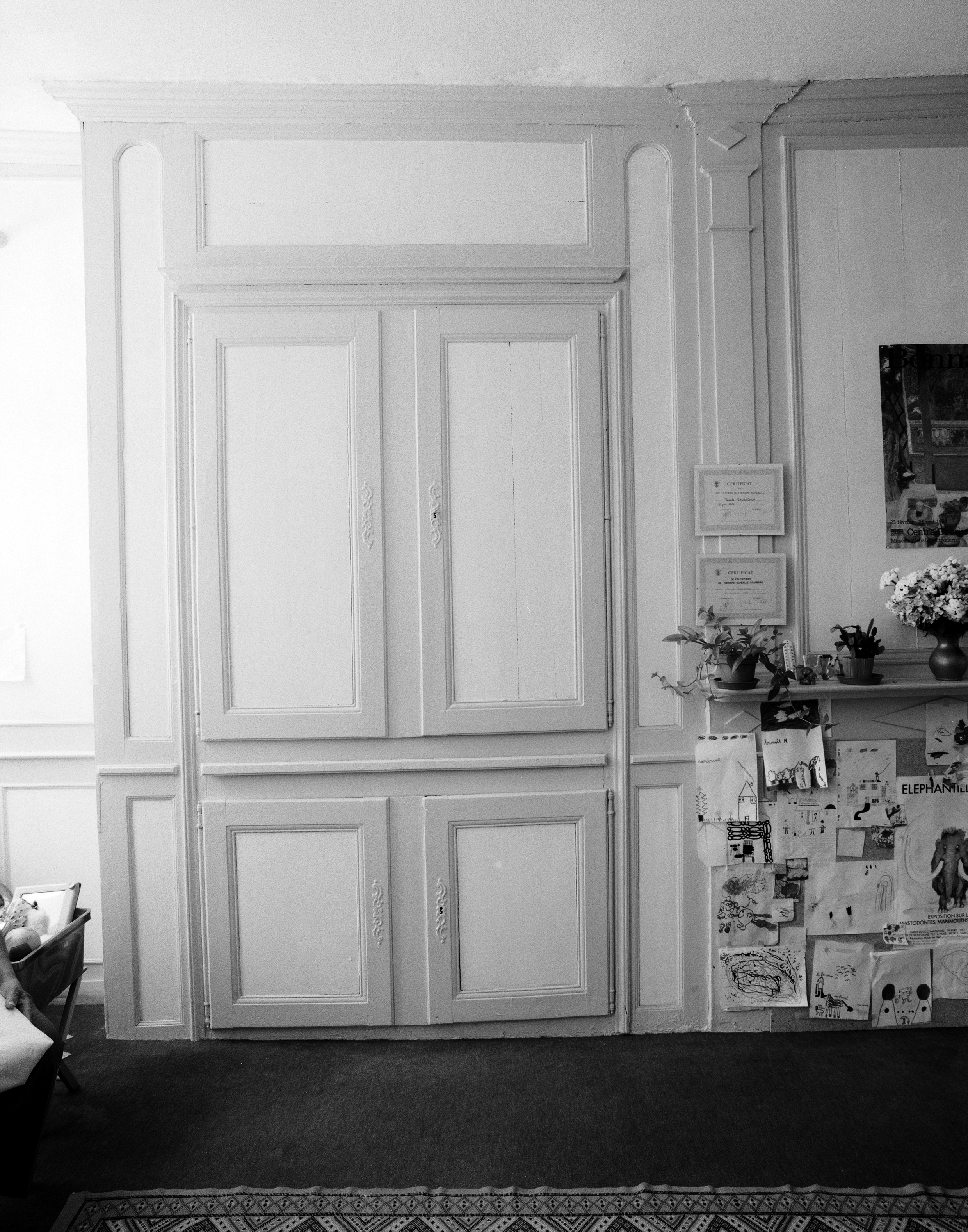 Maison, rez-de-chaussée, pièce nord, mur nord : placard et lambris (état en 1992)Immatriculation