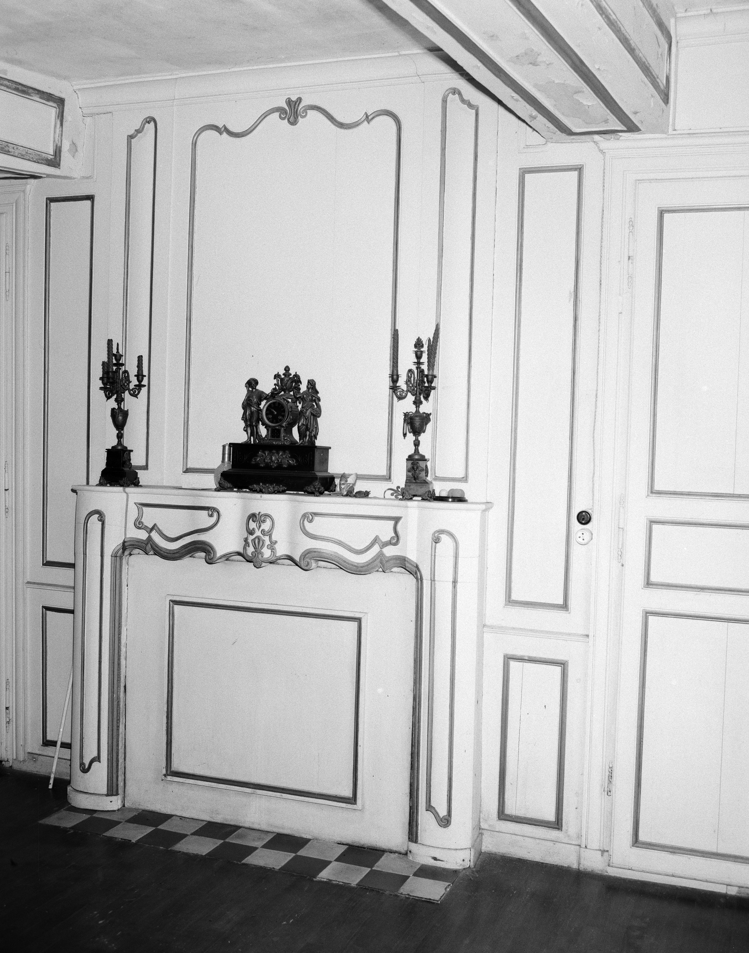 Couvent, logis, rez-de-chaussée, pièce nord, mur sud : lambris et cheminée (état en 1992)Immatriculation