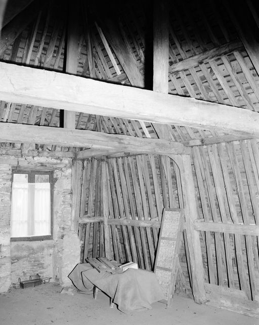 Maison de commerçant, remise à voitures, partie est : charpente et lucarne est (état en 1992)Immatriculation