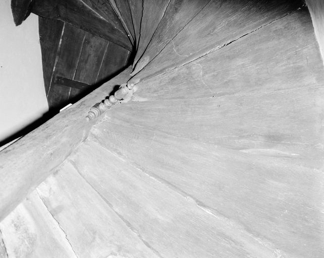 Maison de commerçant : escalier en vis en bois (état en 1992)Immatriculation
