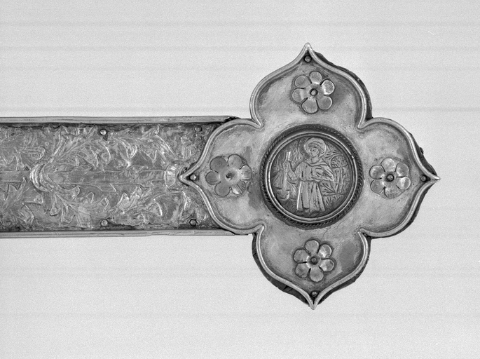 Croix de procession : détail, saint FiacreImmatriculation