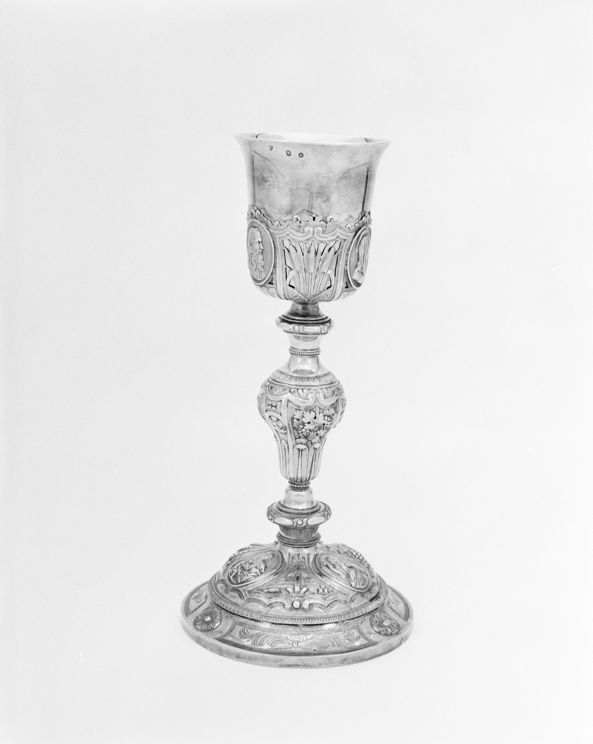 Chapelle d'orfèvrerie : calice, patène, burettes, basilique Notre-Dame-du-Roncier (Josselin),