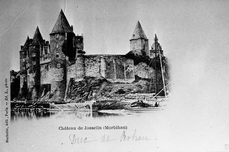 Château de Josselin (Morbihan). Carte postale, Paris : Hachette, édit., Ed. L., phot., [1er quart 20e siècle], d'après une photographie de Mieusement, 1868 (Direction du Patrimoine, Archives photographiques, M. H. 1432).