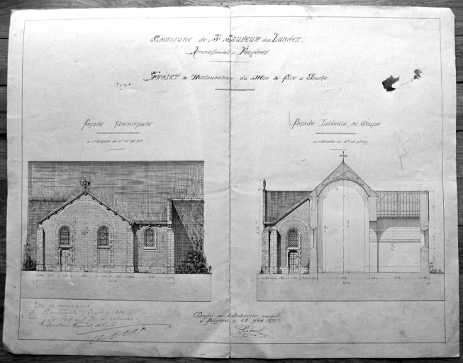 Projet de restauration des façades latérale et principale (1879)Immatriculation