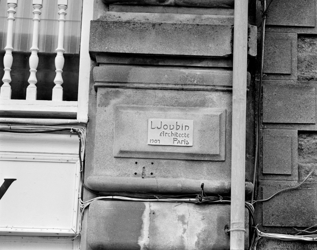 Dinard - Détail signature sur plaque de l'architecte L. Joubin près de la porte d'entrée.Immatriculation