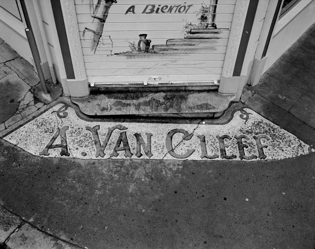 Détail nom du magasin au sol devant porte d'entrée, 23 bd du Président Wilson.Immatriculation