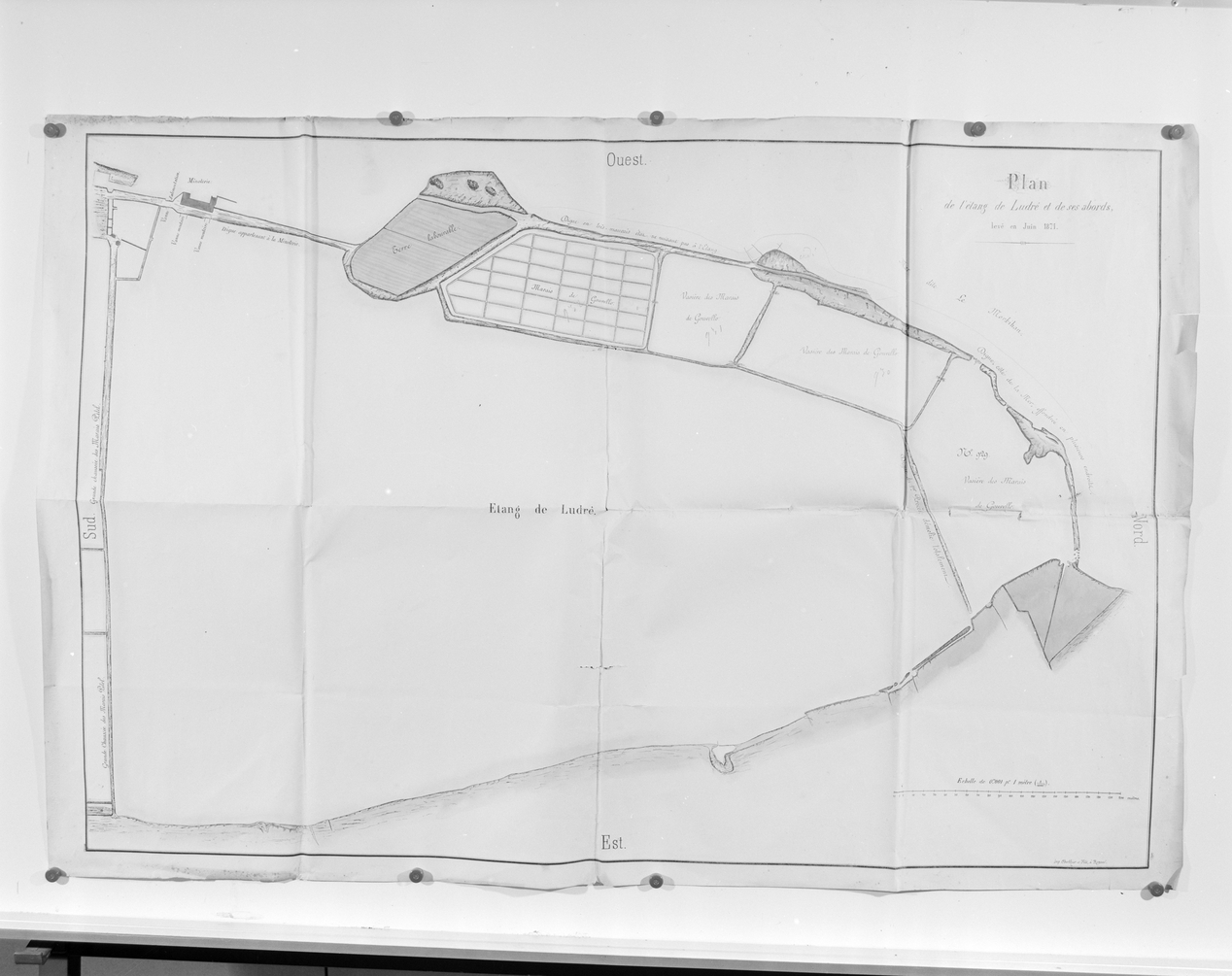 Plan des bassins et de l'étang de Ludré, juin 1871. (Coll. A.D. Morbihan).Immatriculation