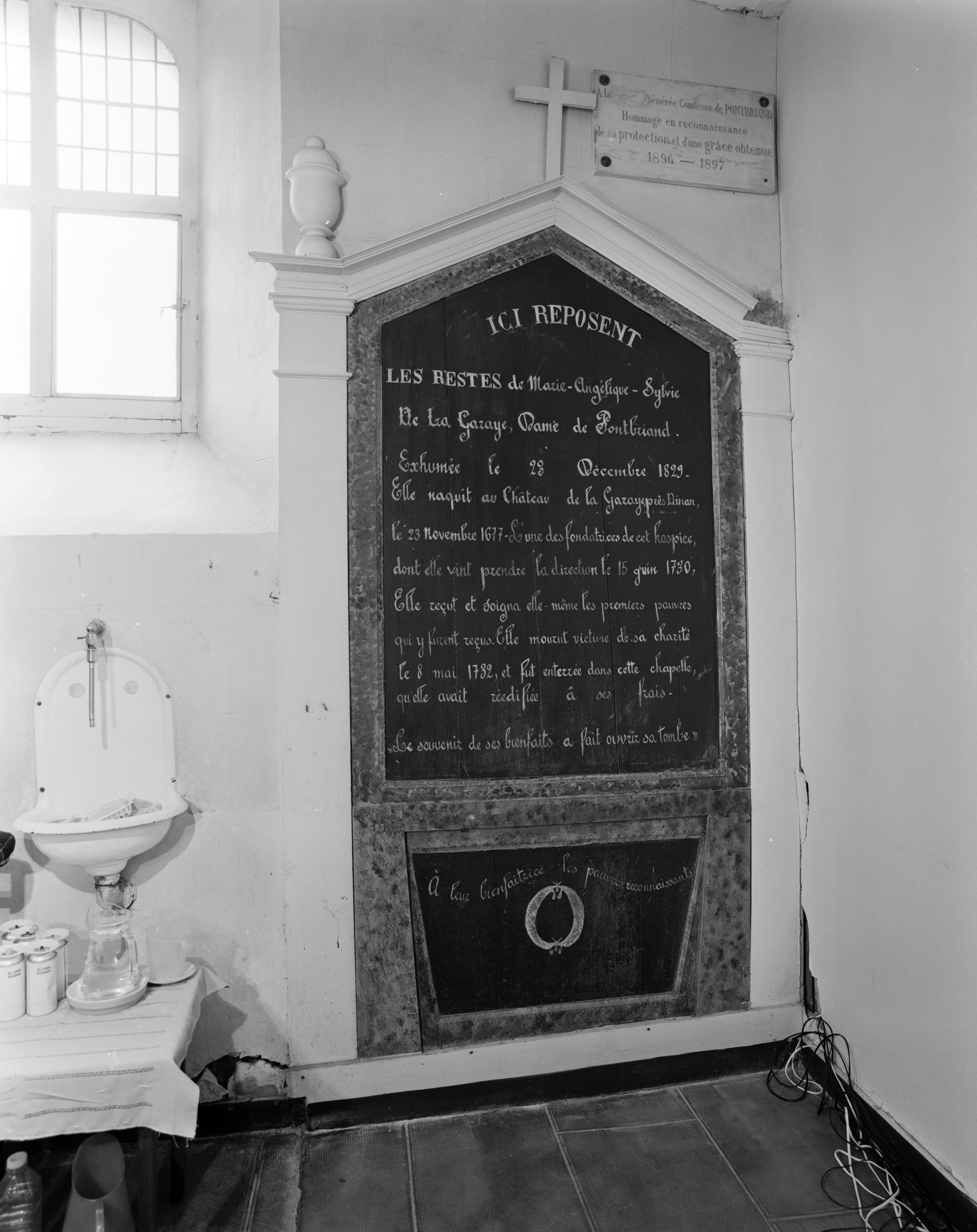 Hôpital, sacristie de la chapelle : cénotaphe de Marie Angélique Sylvie de la Garaye, Dame de Pontbriand (état en 1993)Immatriculation