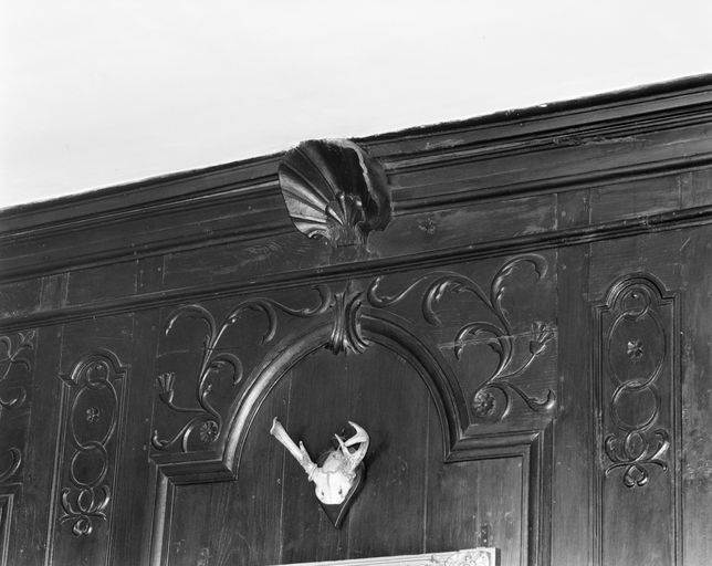 Maison, rez-de-chaussée, pièce nord, mur nord : décor du lambris (état en 1993)Immatriculation