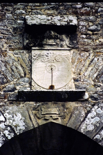 Elévation sud, détail blason et cadran solaireImmatriculation