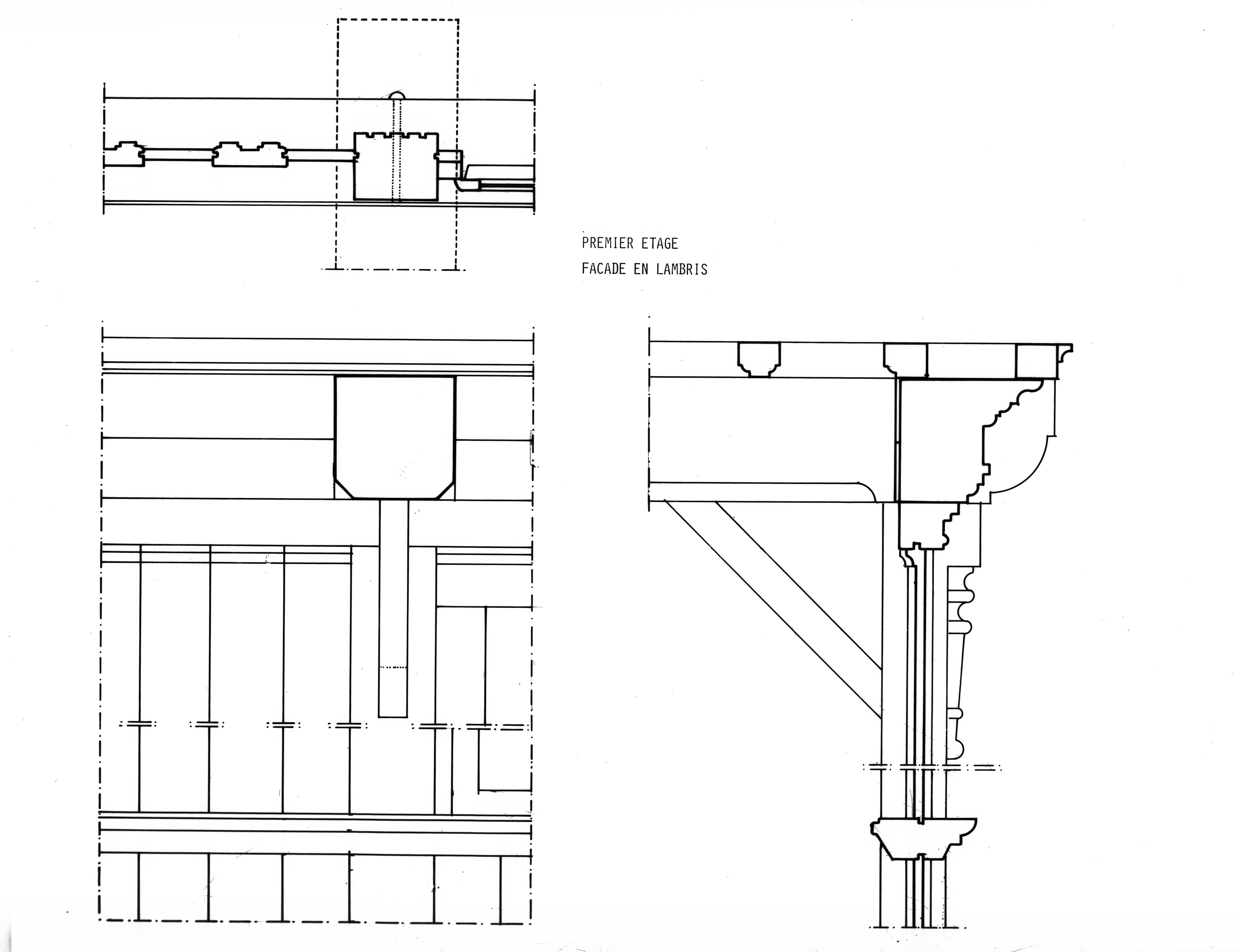 Maison, élévation sur rue : structure des panneaux et coupes (état en 1994)Immatriculation