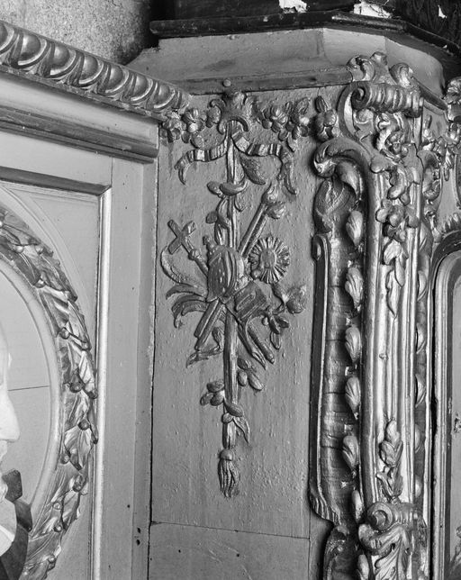 Autel du Sacré-Coeur, côté gauche du tabernacle : Instruments de la Passion (état en 1994)Immatriculation