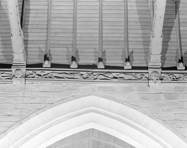 Église, sablière sculptée, partie 13 : un monstre à tête d'homme et une fleur (état en 1994)Immatriculation
