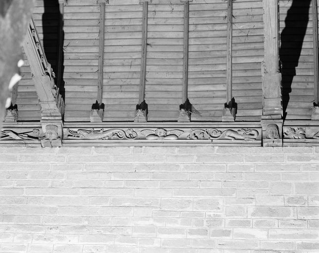 Église, sablière sculptée, partie 6 : ange encadré de deux dragons (état en 1994)Immatriculation
