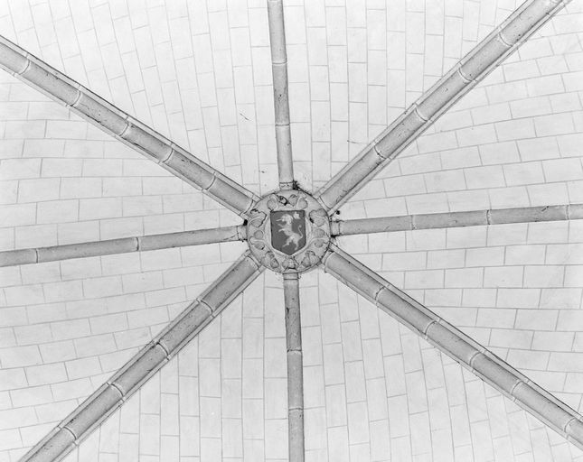 Choeur : clé de voûte ouest aux armes de la famille de Clisson (?) (état en 1994)Immatriculation
