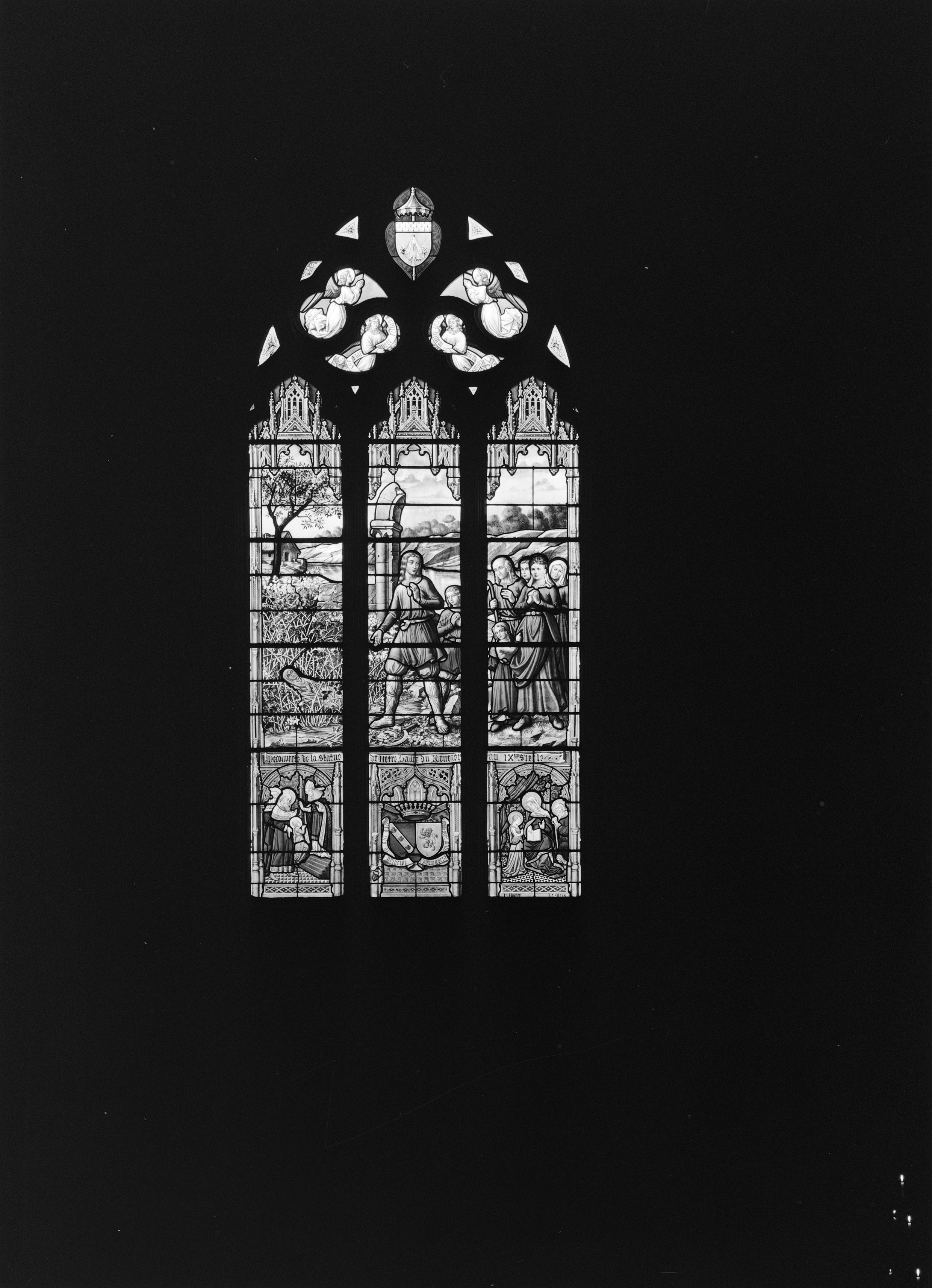 Verrière de la baie 3 : Découverte de la statue de Notre-Dame du Roncier (état en 1994)Immatriculation