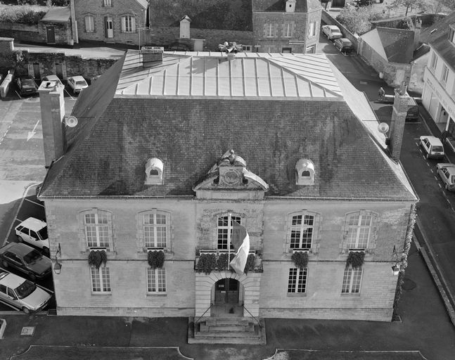 Vue prise du clocher de l'église ND du Roncier vers l'est : la mairie (état en 1994)Immatriculation