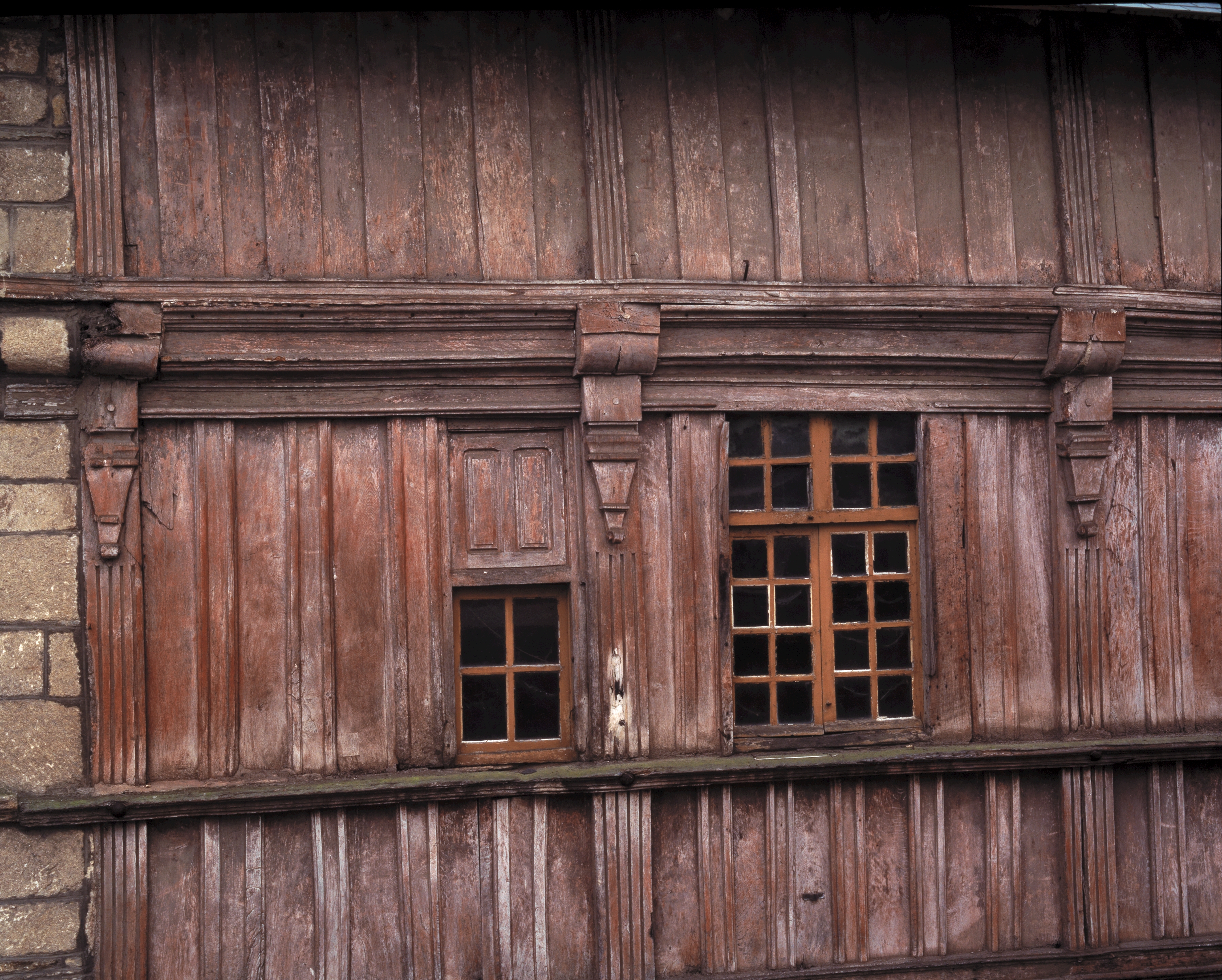 Maison, élévation antérieure, partie supérieure : façade en pan de bois à partir de la gauche (état en 1994)Immatriculation