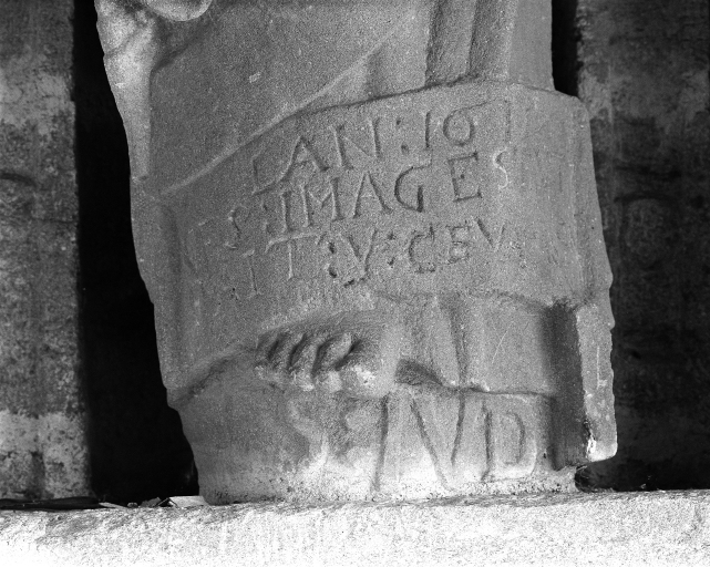 Statue de Judas : détail inscriptionImmatriculation