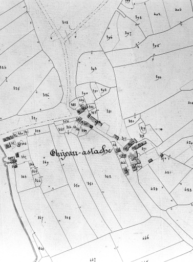 Le village de Glujau Astach. Extrait du cadastre de 1844, section A 3 (A. D. Finistère)Immatriculation