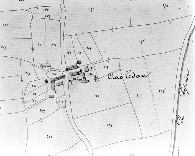 Le village de Craoulédan. Extrait du cadastre de 1844, section D 1 (A. D. Finistère)Immatriculation
