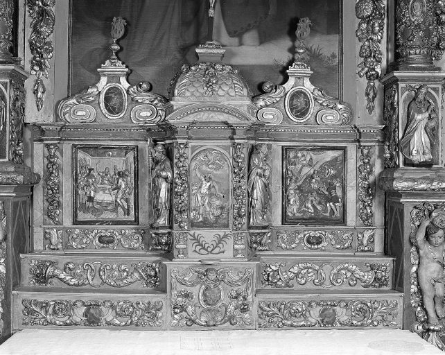 Tabernacle et gradins (la Pâque, sacrifice d'Abraham, pluie de manne, saint Joachim, saint Joseph)Immatriculation