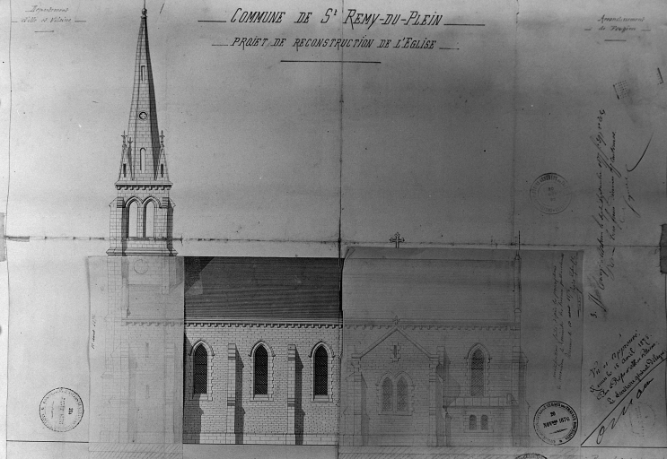 Projet de reconstruction de l'église : élévation latéraleImmatriculation