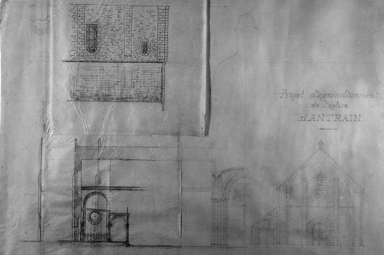 Projet d'agrandissement de l'église D'ANTRAIN. Dessin. (A.D. Ille-et-Vilaine).