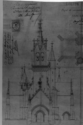 Projet de reconstruction du clocher, vue de faceImmatriculation