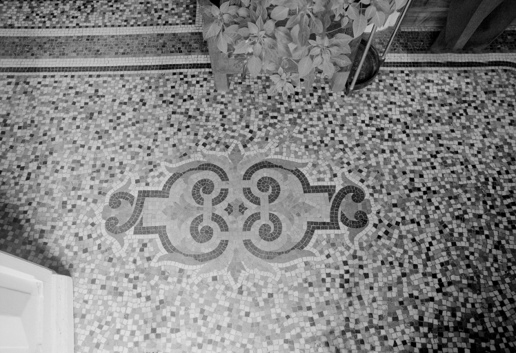 Hall d'entrée, détail de la mosaïque.Immatriculation