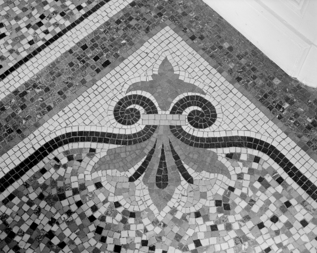 Hall d'entrée, détail de la mosaïque.Immatriculation
