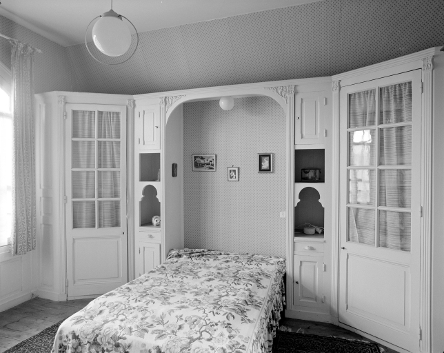 Vue de la chambre d'enfant avec meubles en bois encastré.Immatriculation