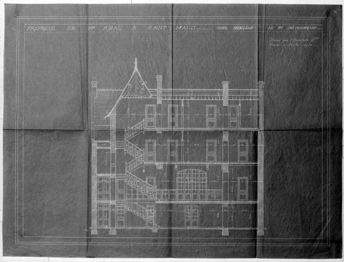 Coupe transversale. Plan original de la villa Ty Goasked, 1903.Immatriculation